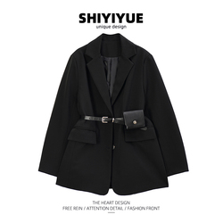 Комплект, черный осенний пиджак классического кроя, в британском стиле, изысканный стиль, в корейском стиле, коллекция 2022