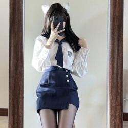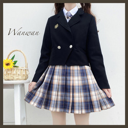 Оригинальная студенческая юбка в складку, форма, летняя базовая одежда для верхней части тела, короткий рукав