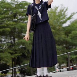 等 Sanben Basic Basic Sailor Sailor Uniforms School Uniform Orthoxat Orthostemployduine Merdmediate Server Summer Summer Bad Girl Средняя длинная юбка
