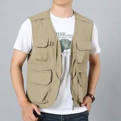 Открытая мульти -карманная мужская фотосъемка фотография работника, рыбацкая пиджака, стоячий воротник без рукавов носит новых мужчин
