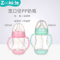 Широкий калибр PP бутылка анти-плоский газовый ремень ручка соломы на младенца Кормление риса озеро ложка 180240 мл утка рот