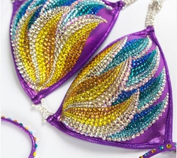 Американский бренд сексуальный хрусталь украшения сиреневый Бикини регулируемый перекресток со шнурками Конкурс бодибилдинга комплект