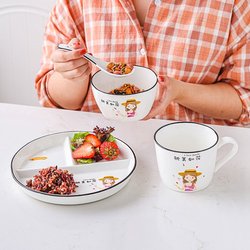 Диетическая столовая тарелка посуда, один человек диета, жир, плоские пластины, сепаратор, O-деление, три-штучная керамика лотка