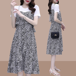 Комплект, платье, летний приталенный корсет, тонкое платье-комбинация, в цветочек, средней длины