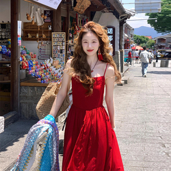 Красное сексуальное платье из провинции Юньнань, юбка подходит для фотосессий, французский стиль