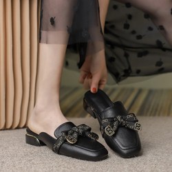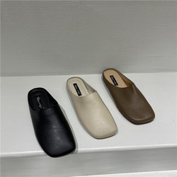 Корейская мода Baotou Semi -Slippers Женщины носят плоское дно 22 весенняя мягкая кожаная анти -кишечная голова, одна нога ленивых туфель