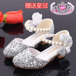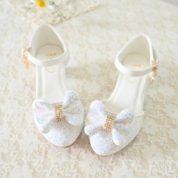 Высокая осенняя детская обувь для принцессы для кожаной обуви, серебряное вечернее платье, кварц