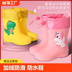 Детский флисовый водонепроницаемый нескользящий дождевик для мальчиков, детские сапоги для раннего возраста, лента, подходит для подростков