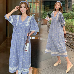 Платье беременной женщины длинный фасон Колено 2022. новая коллекция Свободный большой размер Личная летняя юбка прилив горячая мама хлопок Мейсон