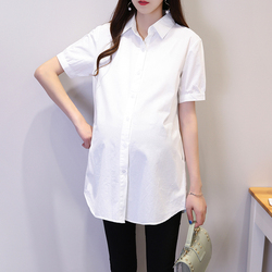 Бизнес платье для беременных летние лето белый Беременная женщина сорочка Женский короткий Профессиональное интервью большой размер Инструмент рубашка короткий верх Одежда