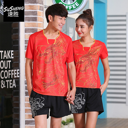 Короткий рукав Профессиональный настольный теннис одежды бадминтон костюм комплект мужские и женские стиль Прицел сухой пот матч обучение костюм толстовка