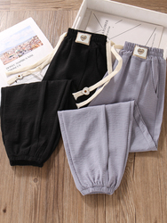 Средство от комаров, тонкие детские черные штаны для отдыха, коллекция 2023, оверсайз, защита от солнца, из хлопка и льна, в западном стиле