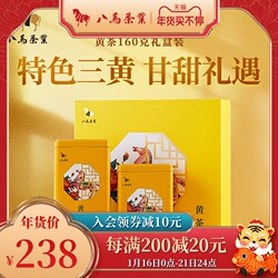 Восемь лошади чай новый товар новинка Junshan Yellow Tea Tea Tea Tree Bud Leaf Hunan Специальная подарочная коробка 80G * 2 банки