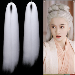 Парик Ханфу, древний стиль, белые волосы, слегка пушистые волосы, материал для прямых волос, ручная работа, сырье для мешка для волос в виде пучка в древнем стиле своими руками