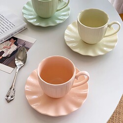 Anmu Liangpin Внешняя торговля Экспорт Французский цвет макарон цвет текстура лепестка керамическая чашка для послеобеденного чая, кофе и блюдце