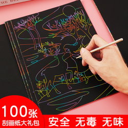 100 Чжан Сюань цвет Соскабливание бумаги разноцветный детские Начальная школа детская сажа в детском саду черный Скребок комплект ручная работа Граффити цвет Дискокция бумажных картин