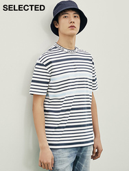 CD6.11Выбранные думают чистый хлопок полосатый принт круглый воротник мужской Свободный короткий рукав Футболка S | 420201589
