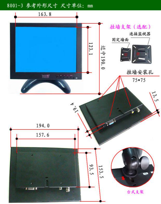 8-дюймовый дисплей высокая Цин VGA / BNC / RCA Промышленный контроль линии управления сварочной машиной Микроскопический зеркало HDMI.