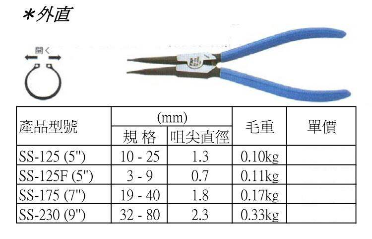 Импортированная Японская верхняя вершина за ось карты с прямыми сетчатыми щипцами SS-125F