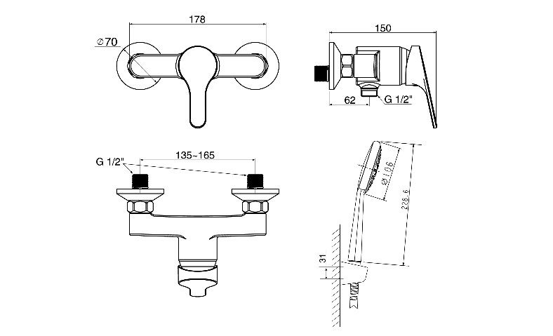 Красивый стандартный Спутниковая посуда FFAS1412 Настенная душа Смеситель для воды CF-1412 Смешанный клапан