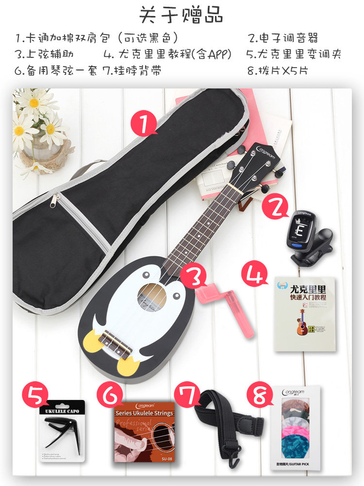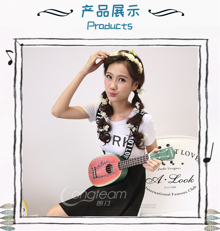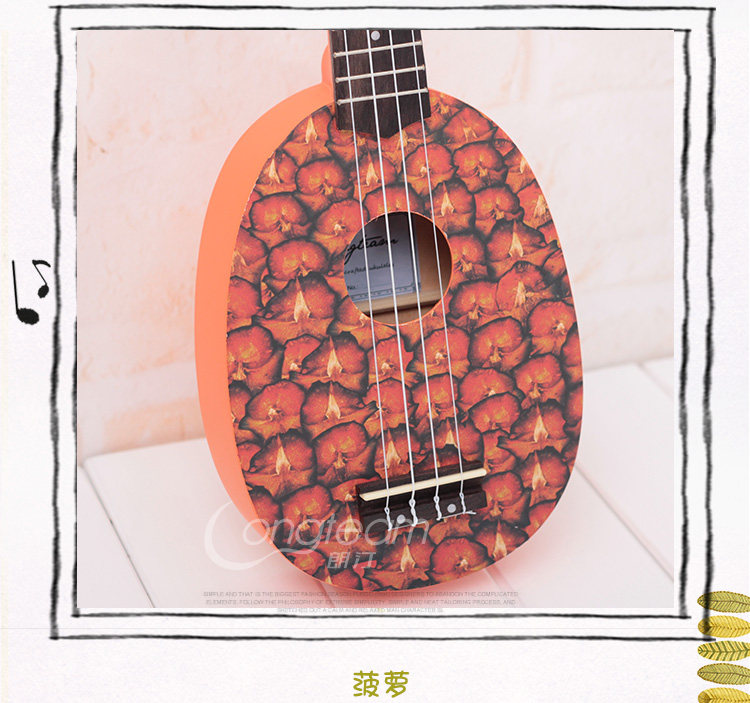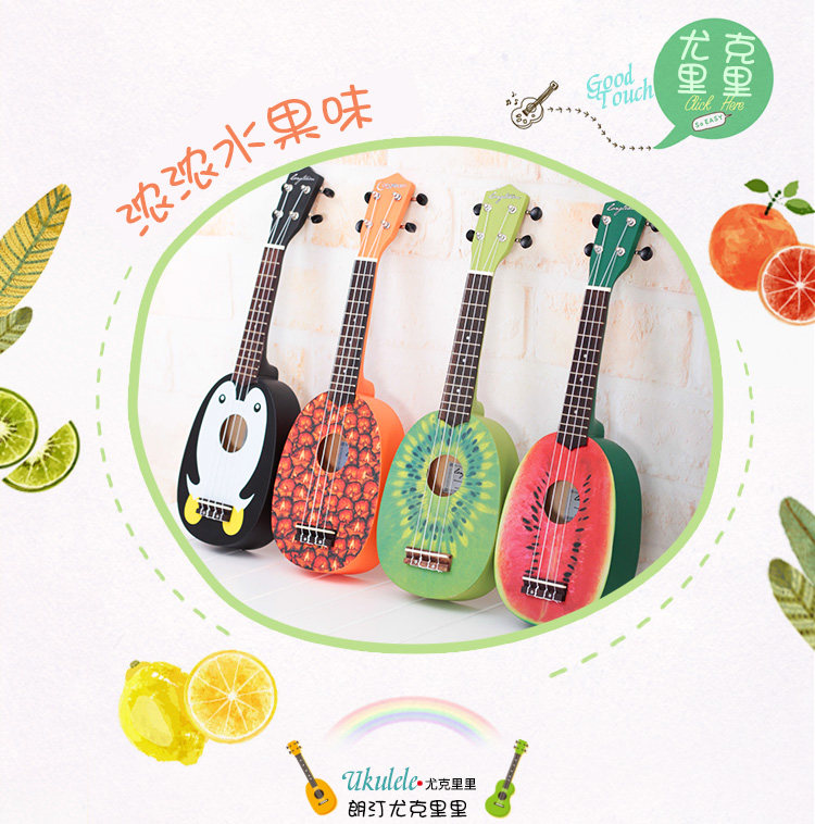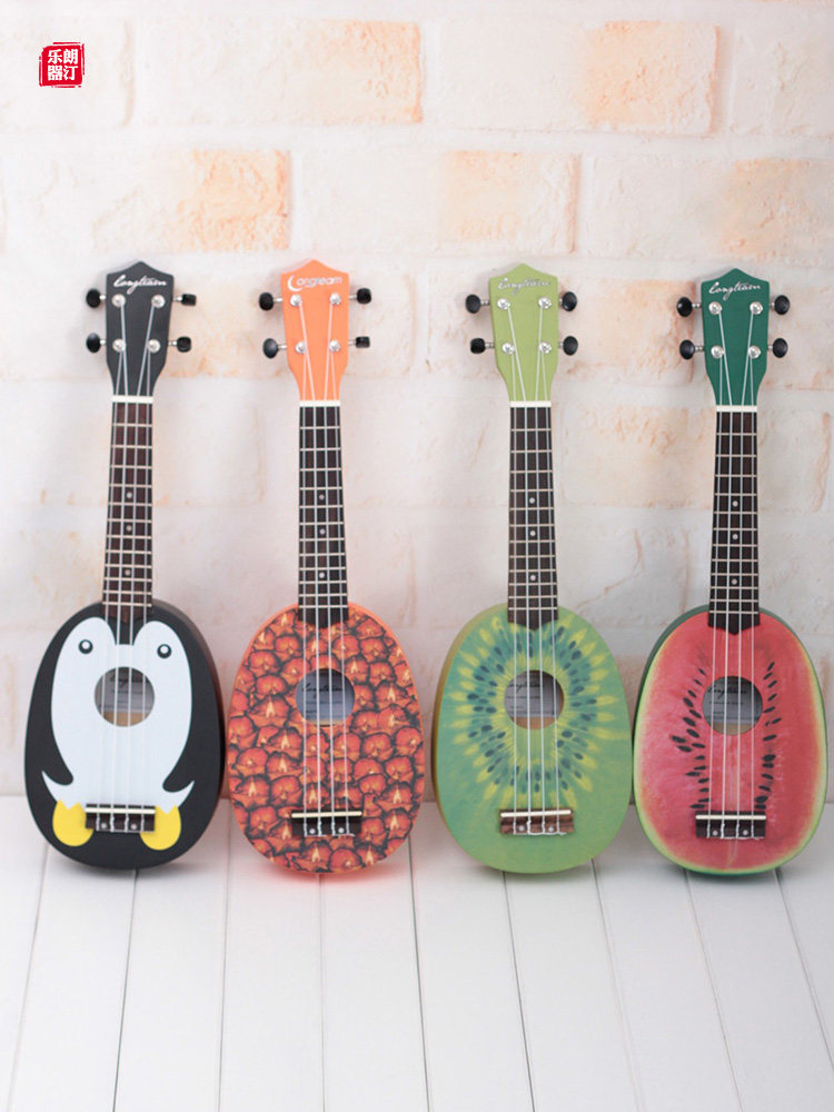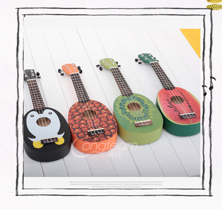 Четырех на Гавайях маленький гитарная гавайская гитара, звук такой же теплый и яркий, как и солнце на Гавайях. Соломенное танец сопровождается им, и он также является фаворитом гитариста «Битлз» Джорджа Харрисона.Это арбуз, фрукты киви и форма пингвинов
