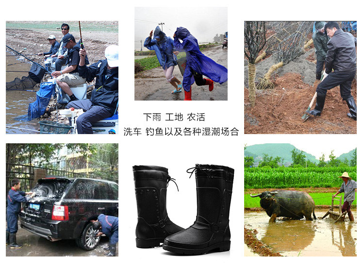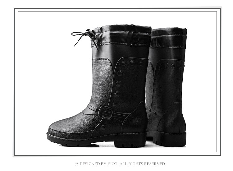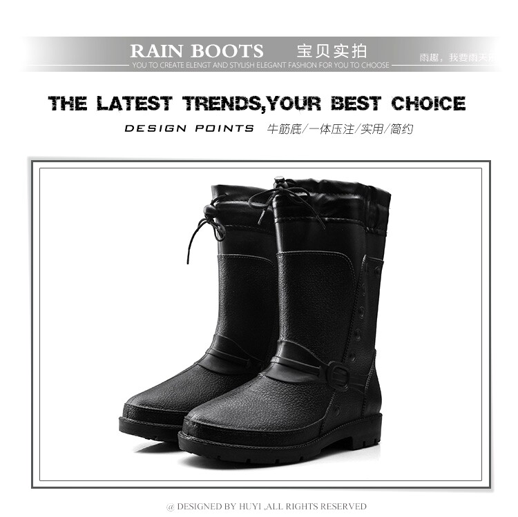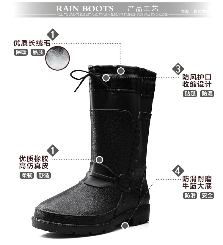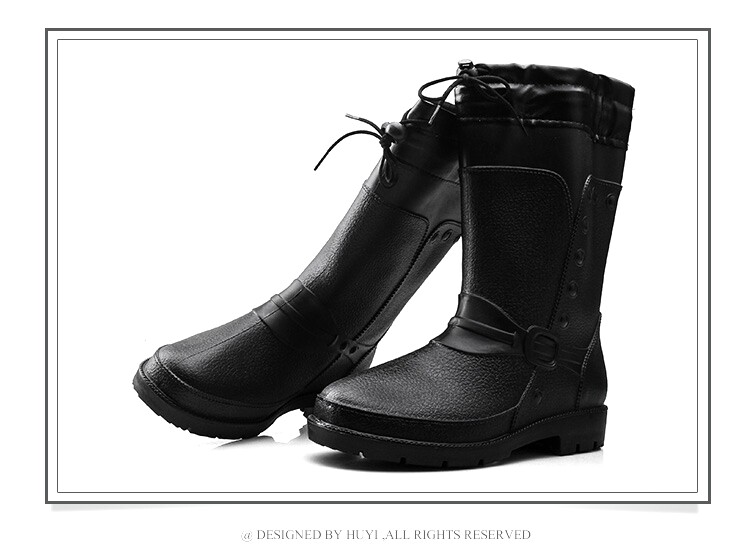 Зимний корейская версия середина высокие мужской Трудовые дождевые туфли нескользящие Водовая обувь Рыболовные резиновые туфли удерживающий тепло хлопок Дождевые сапоги черный бормоты