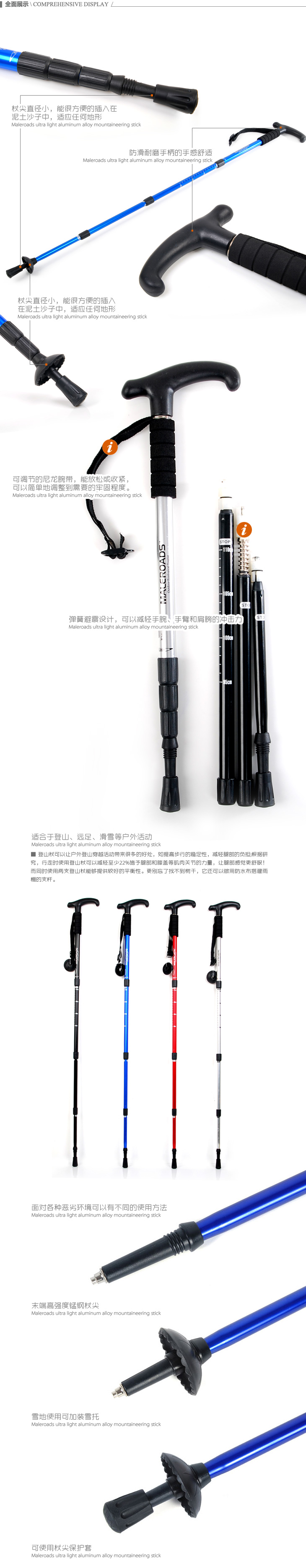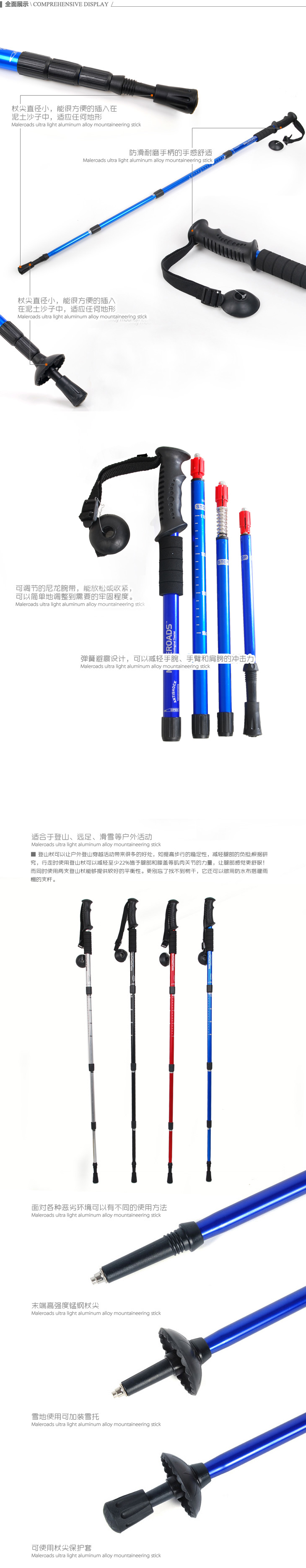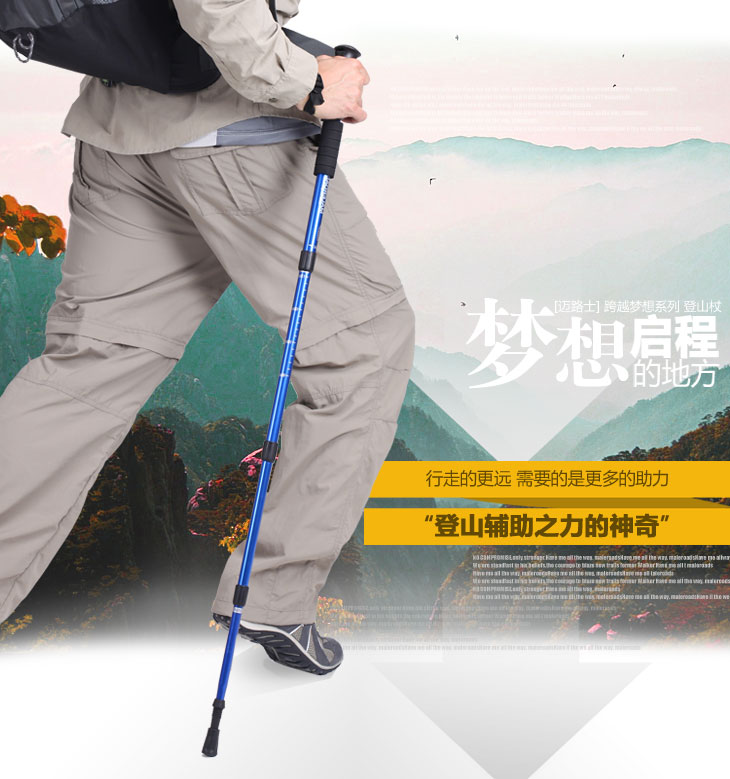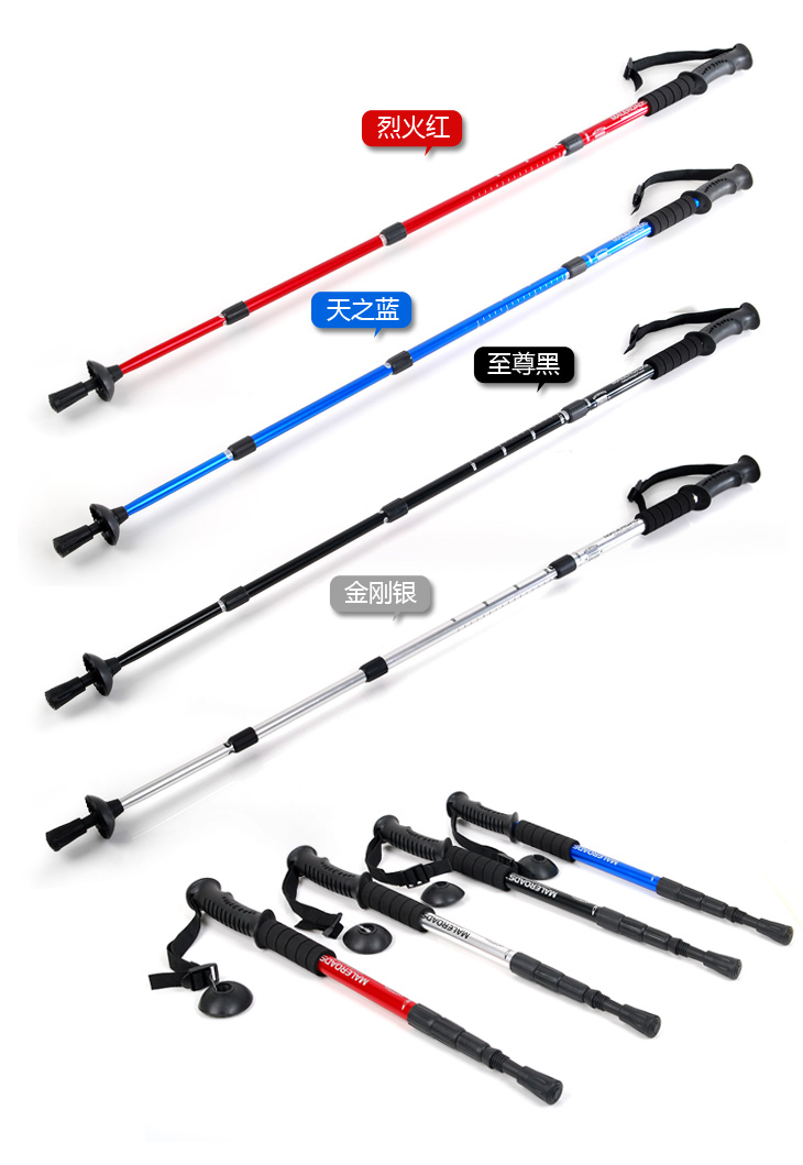 Mai Lian Mountaine алюминий Легкий телескопический амортизирующий абсорбирующий четырехсекционный тростник тростника Пешие прогулки на открытом воздухе
