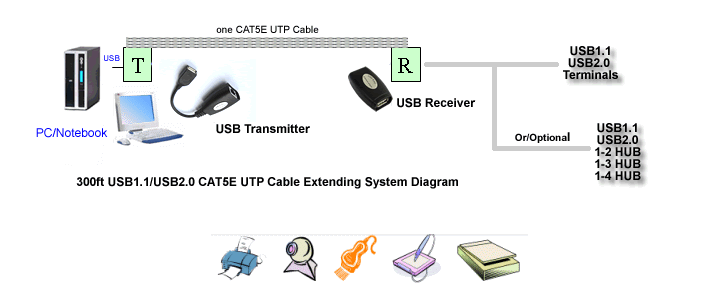 50-100 м увеличенное расстояние (с использованием один Корневая страна стандартный Сетевой кабель), низкоскоростная USB-клавиатура и мышь стандартный Расширьте 300-500 метров