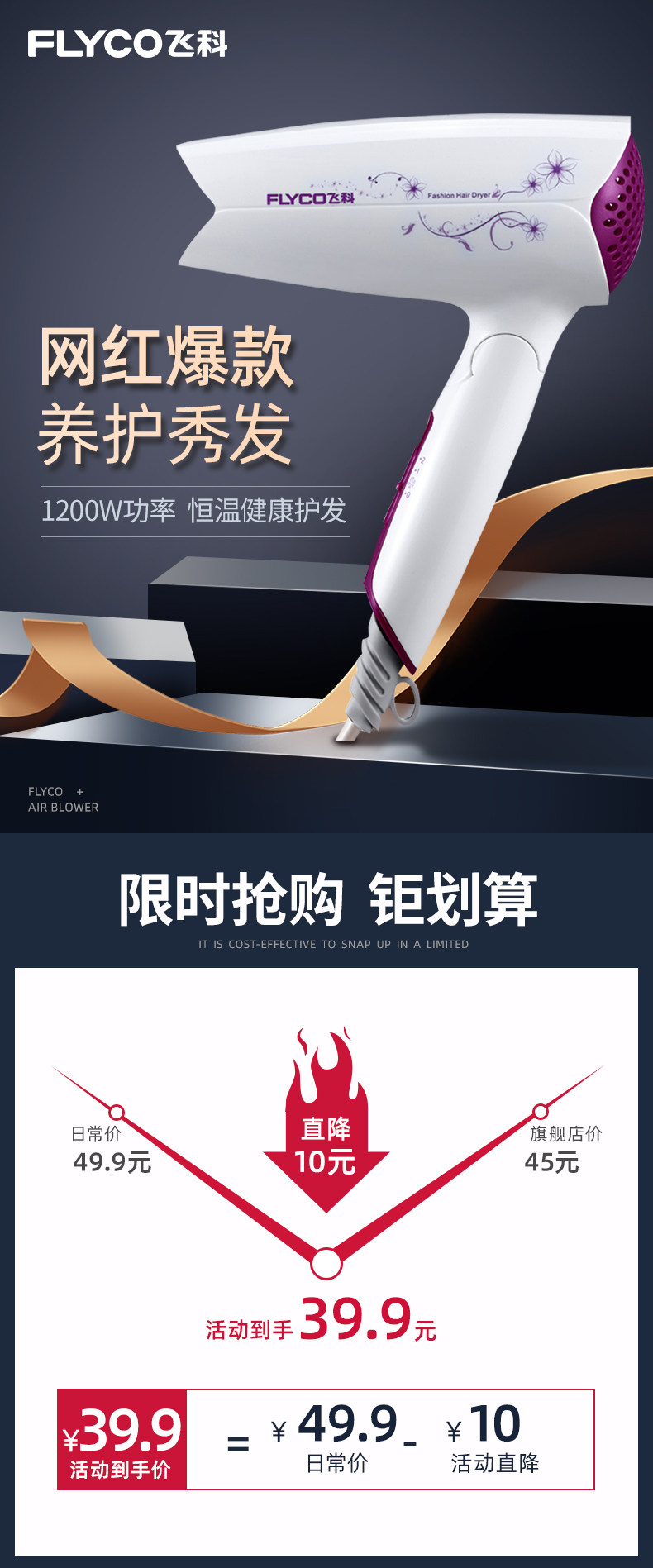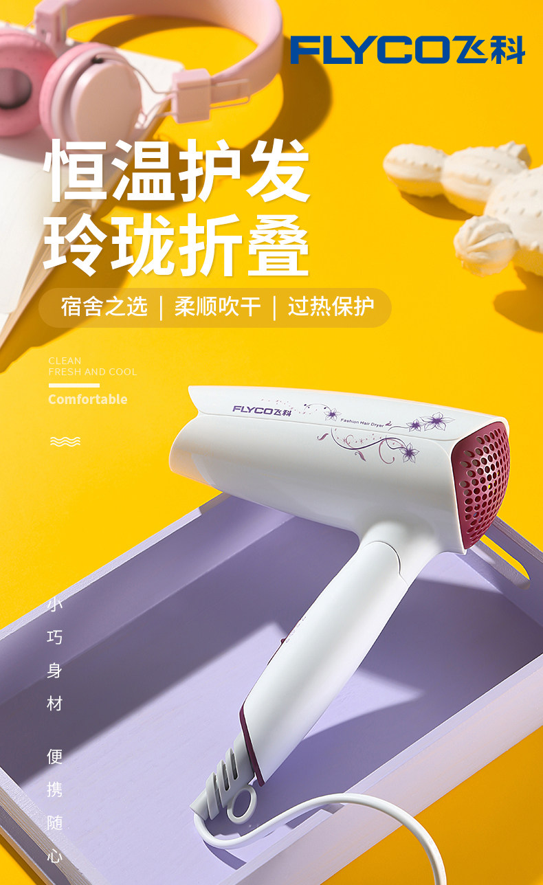 Фен Feike бытовой отрицательный ионный фен небольшой размер может быть со складыванием Студенческое общежитие портативное оригинал