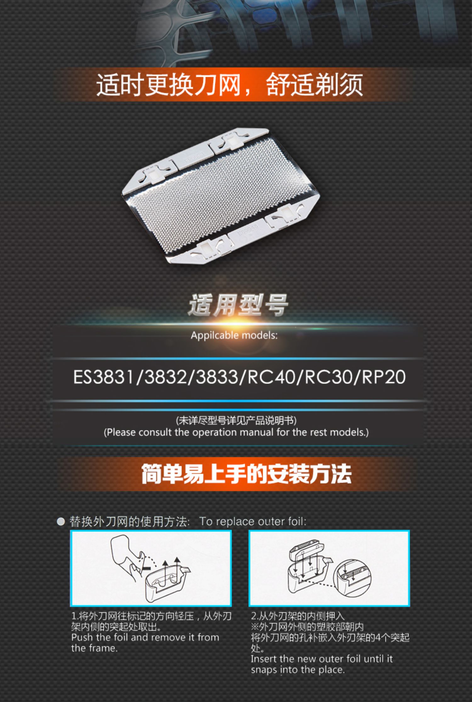 Свободный низ Нож для бритья нож сеть ES9943C подходит для ES3831 / 3832/3833 / RC40 / RC30 / RP20