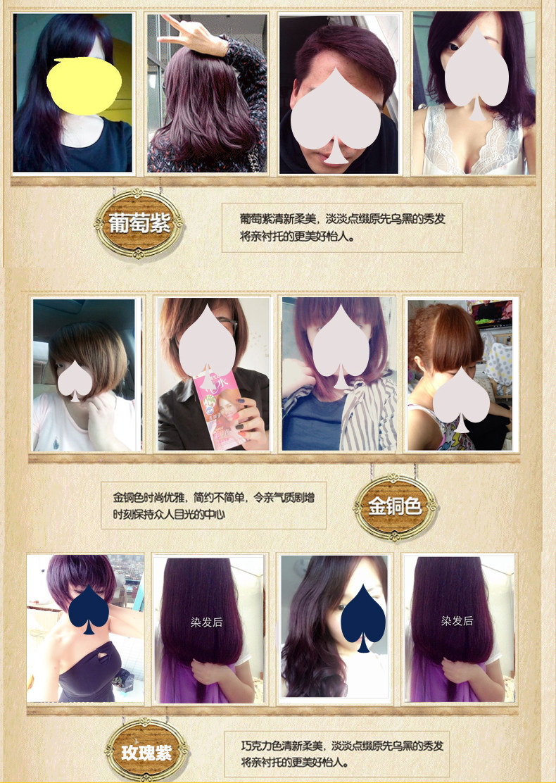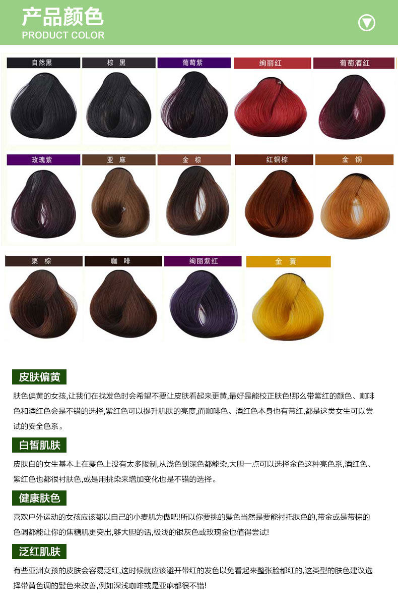 на верх Проблема цвета: качество волос у всех разное,(в частности не имеет Окрашенные волосыверх Время цвета будет больше, а разница в цвете будет относительно большой)потребности верх Время цвета будет другим, пакет НарядОписание верх стандартный Время - соотношение цветов фона стандартный цвет светло Один градус, температура 30-35 градусов слева справа из верх Время окрашивания, когда вы красите волосы, вы можете корректировать волосы верх Цветовая ситуация, см. уже через верх Когда цвет будет доволен, вы можете смыть, время 35-60 минутМежду тем, самый длинный не должен превышать 75 минут..Примечание: окрашенный черный Друзья тебя красят в другие цветабез закон верх Цвет, ты должен исчезнуть, прежде чем ты сможешь