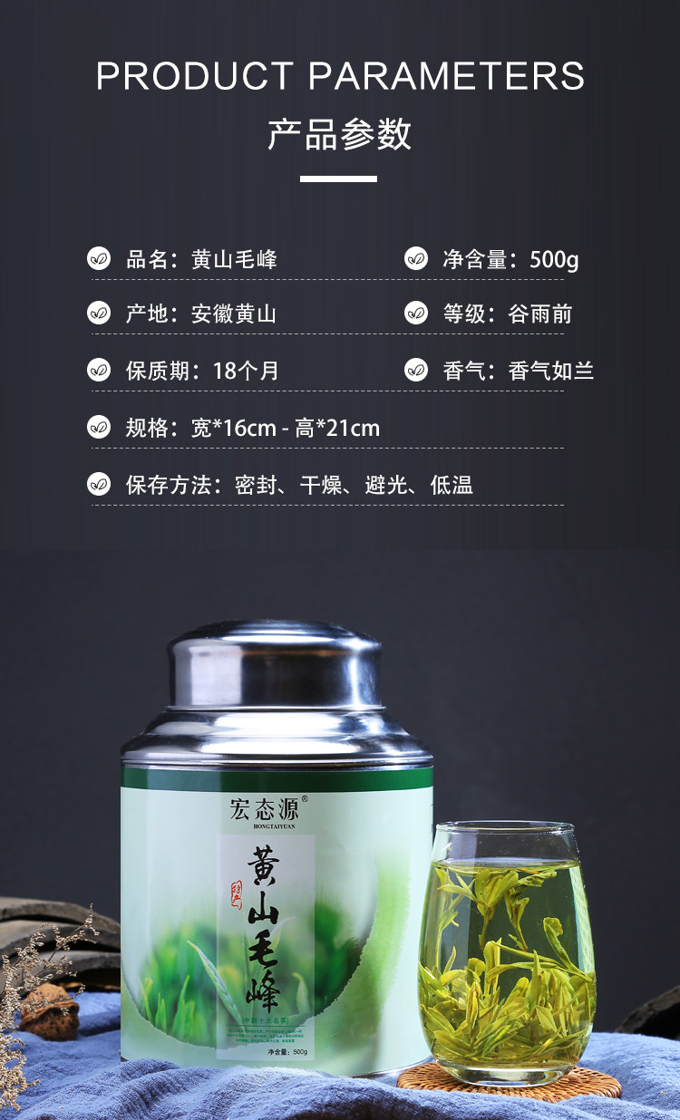 2021 новый Чай Huangshan Maofeng Дождь Чай Зеленый чай АНХУИ Чай для волос Квадратный 500 г Консервированный