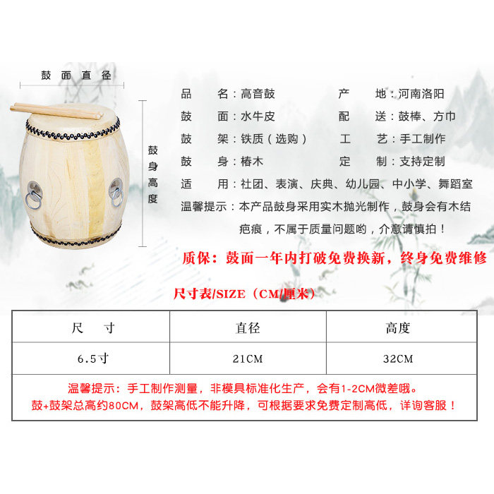 - 6,5 дюйма высокая Звуковой барабан+барабанная палка+железная барабанная рама