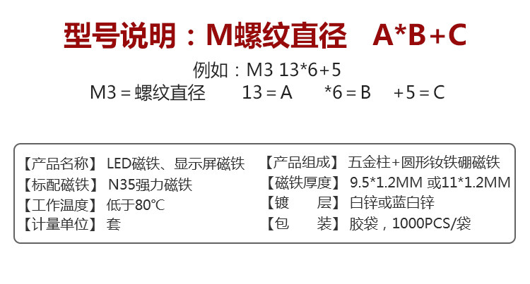 - M3 13 * 6 + 5 с 9,5 * 1,2 магнита