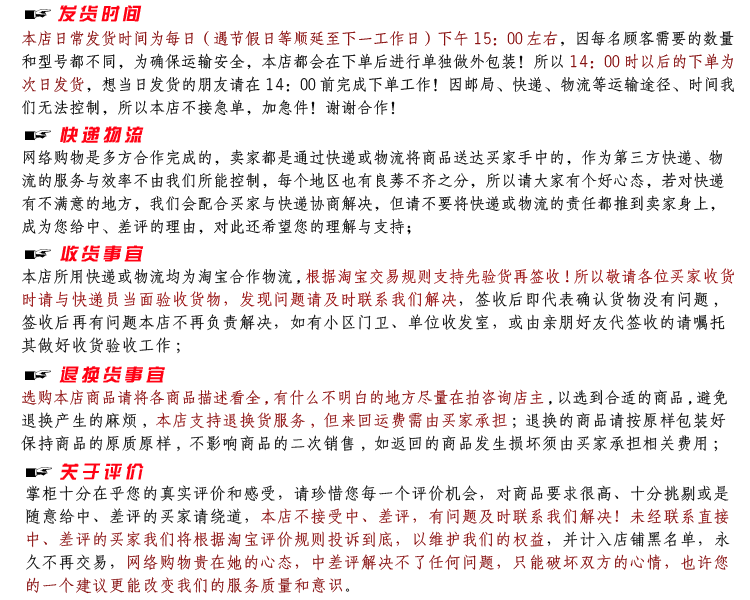 1.Наш магазин - это заводская операция,Исходящий и пакет Вам нужно нажать один продолжать, Так что один Несколько моделей без Закон отгрузки, пожалуйста Покупатель понимает.Покупатели, которым нужно несколько моделей пожалуйста Используйте метод корзины покупок в соответствии с требуемой моделью низ один;
