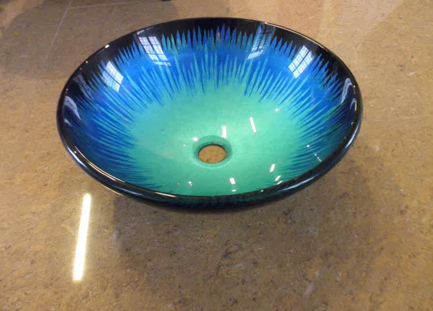 Европейский стиль голубой Стеклянный умывальник / рисованной разноцветный Стеклянный бассейн / стеклянная ванная комната кабинет