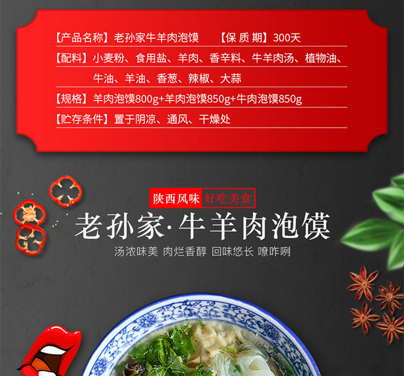 Свиная булочка с бараниной Lao Sun 5 пакет 850 г деликатесов на кончике языка Шэньси, фирменные закуски на улице Сиань Хуэйминь 3 варианта