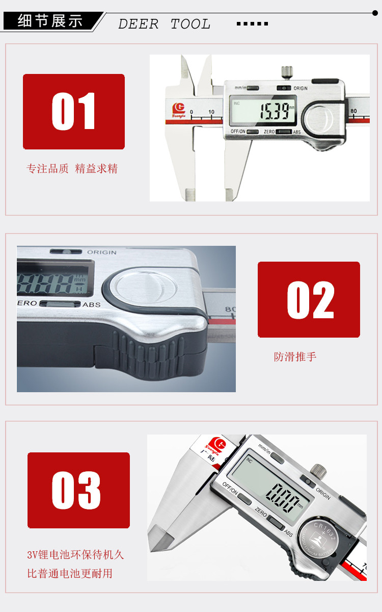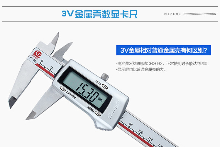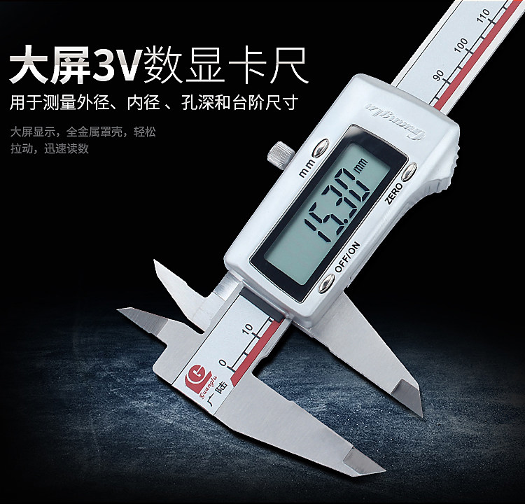 Отображение абсолютного числа Guanglu на происхождении Швейцария чип металлический Электронный цифровой штангенциркуль Shell 3V IP67 водонепроницаемый Цифровой дисплей