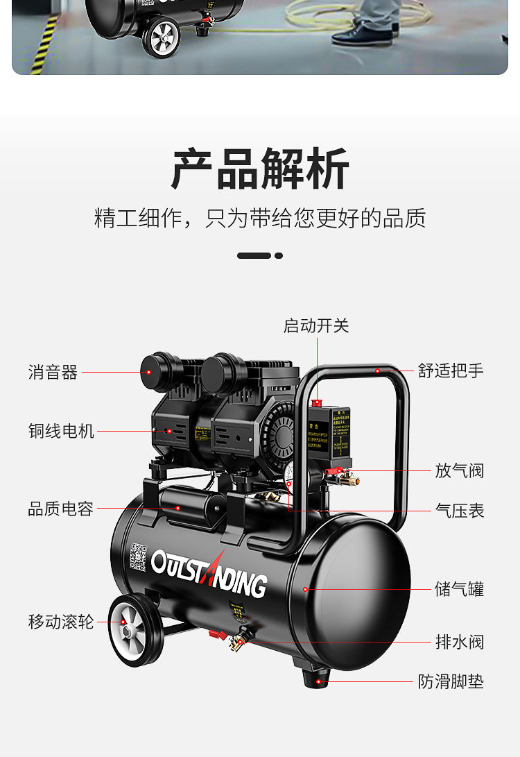 Otys Воздушный насос Воздушный компрессор маленький высокая Mercurious пневматический фунт 220 В по деревообразной краской воздушный насос воздушный компрессор