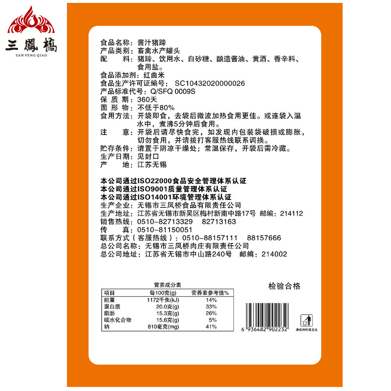 Sanfengqiao свиные ножки в мешках с соусом 235 г тушеная свинина тушеные свиные ножки мясные закуски закуски без Фирменные новогодние оловянные товары