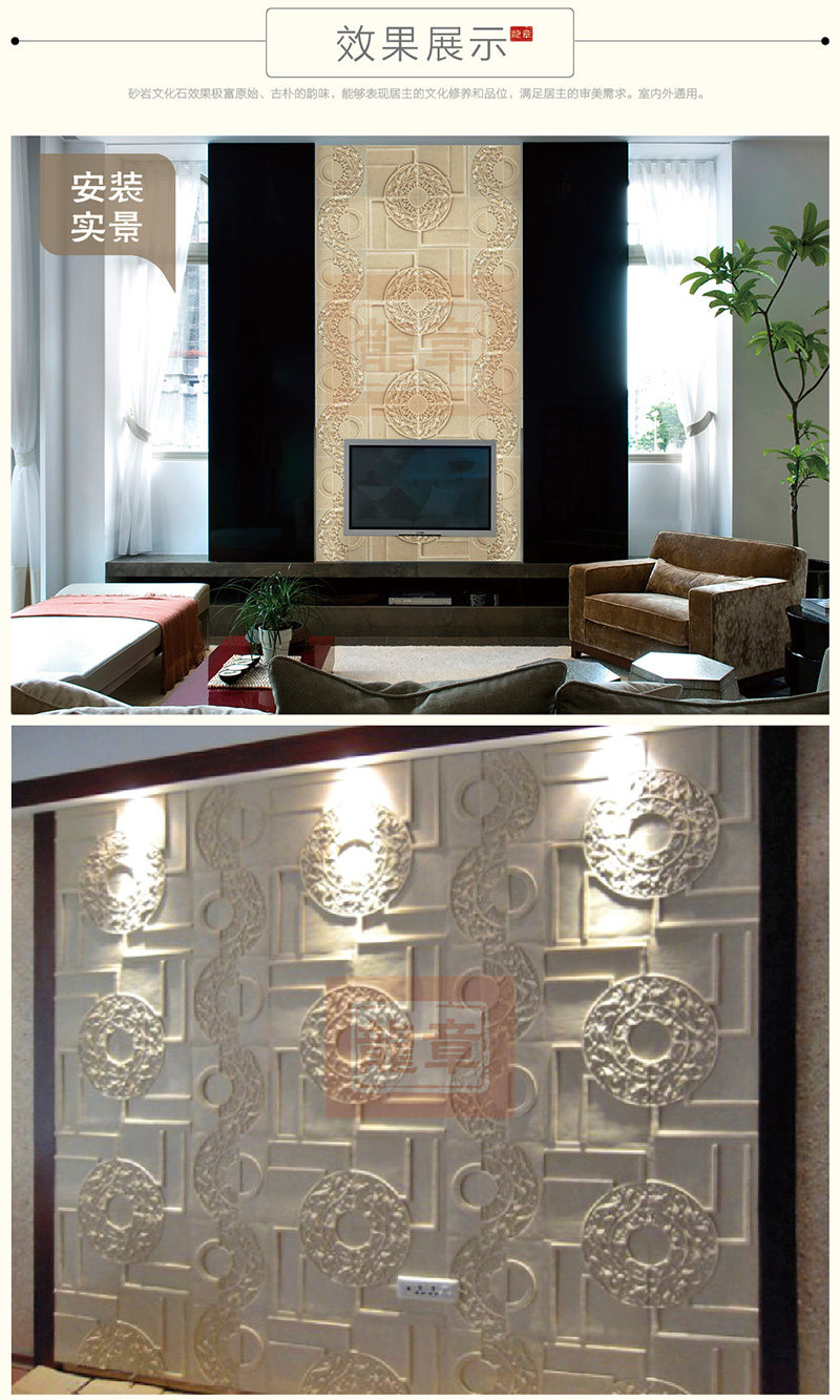 Лонжен песчаник панель Материал телевизор фоновый стена стерео песок резьба фона стены песчаник тиснение культурной каменной головоломки медь панель