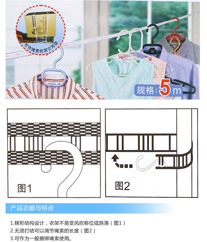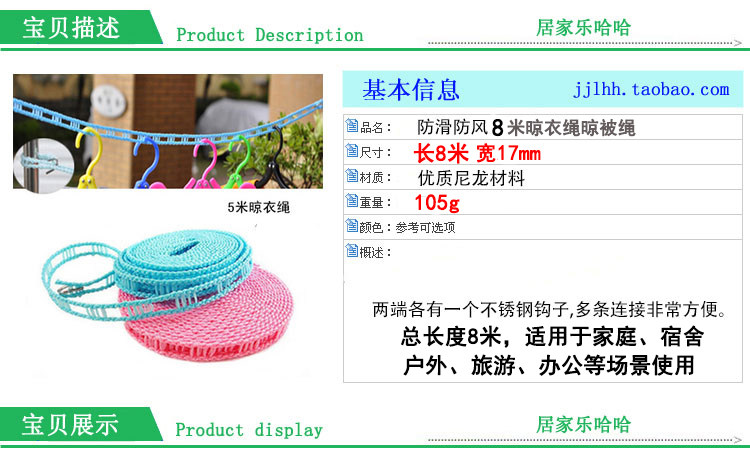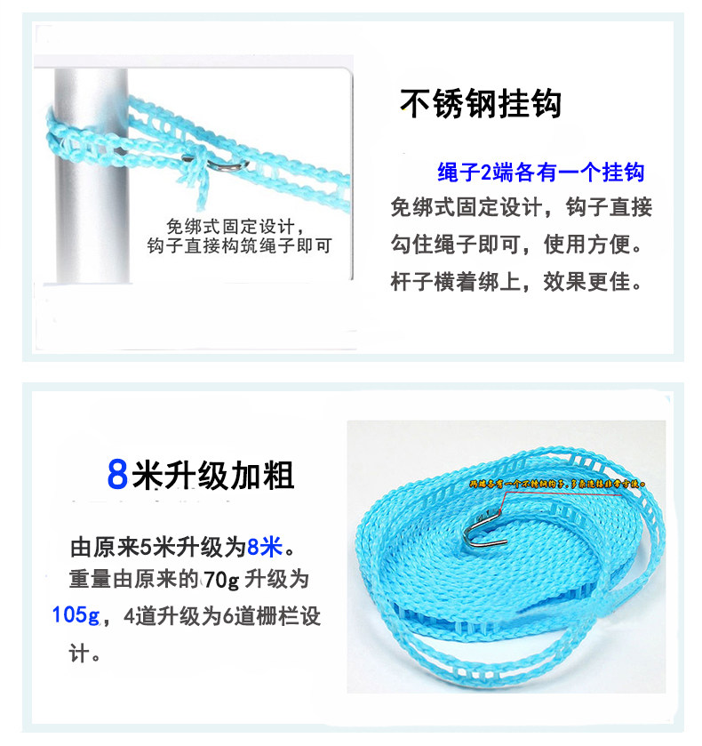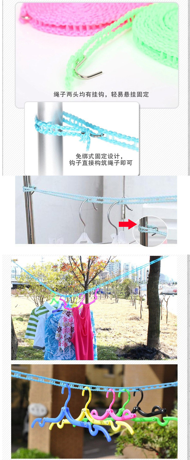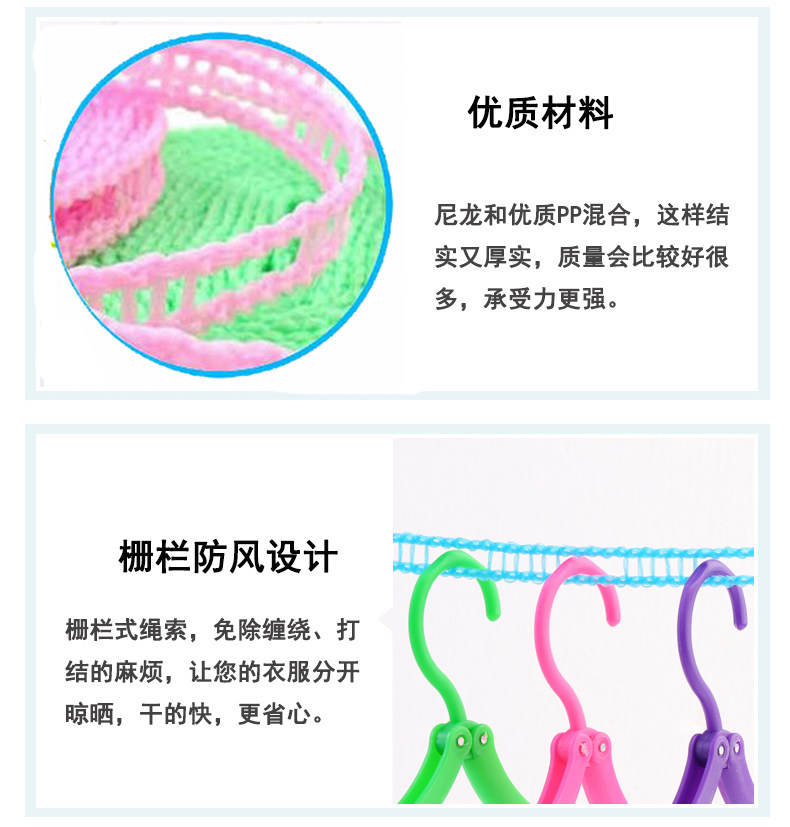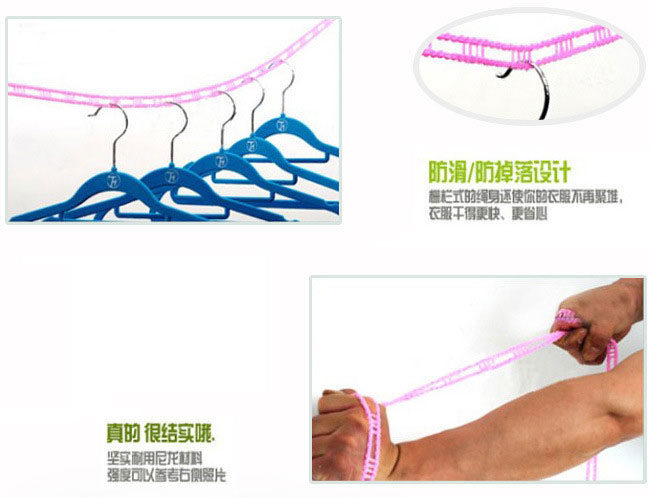 Тело каната использует канат заборного типа при использовании. только Просто повесьте крючок на опору и любой клетчатый Бельевую веревку можно легко закрепить, а длину можно свободно регулировать, что исключает возможность запутывания и завязывания узлов. Корпус из веревки, напоминающий забор, также избавляет вашу одежду от скоплений, и она высыхает быстрее и без лишних хлопот.