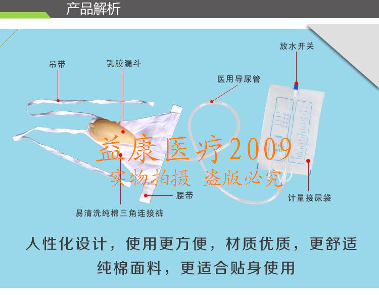 Конструктивное исполнение:В соответствии с особенностями строения человеческого тела закрытый приемник мочи, изготовленный из импортных материалов, удобен в носке и приносит большое удобство как медперсоналу, так и пользователям. без Его легко носить, переодеваться, стирать и испражняться. один избавь от неприятностей. низ Конец представляет собой сменный и дозируемый мешок для мочи, а конец - двухтактный. переключатель , Позволяя пользователям легко мочиться. Этот продукт находится в сторона Положение лежа, низко лежащее положение, положение полулежа и другие положения тела могут обеспечить герметичный сбор мочи и вентиляцию воздухопроницаемый Цель учащенного мочеиспускания.