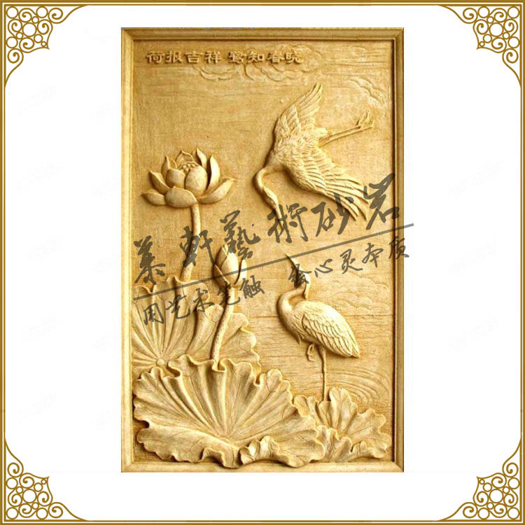 Му Сюань Песчаник Рельеф Песчаник Трехмерная Фреска Фон Настенная Фреска Лотос и Цапля Ранняя весна Рассвет Гостиная Перегородка Экран