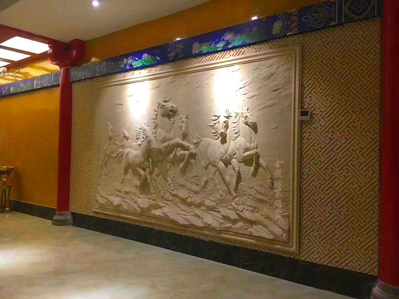 Золотой алмаз искусственный рельеф песчаника фон стены китайский рельеф песчаник росписи рельеф диван фон восемь лошадей