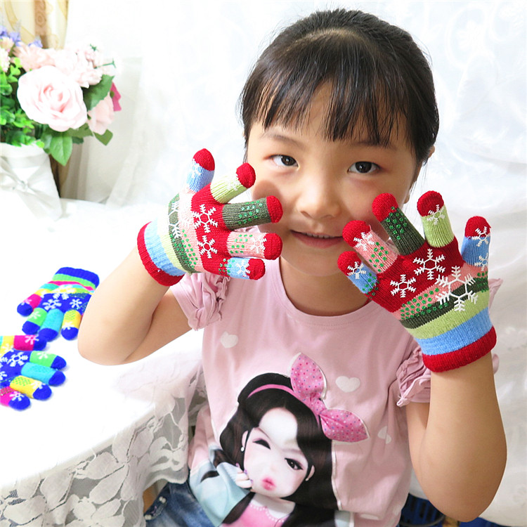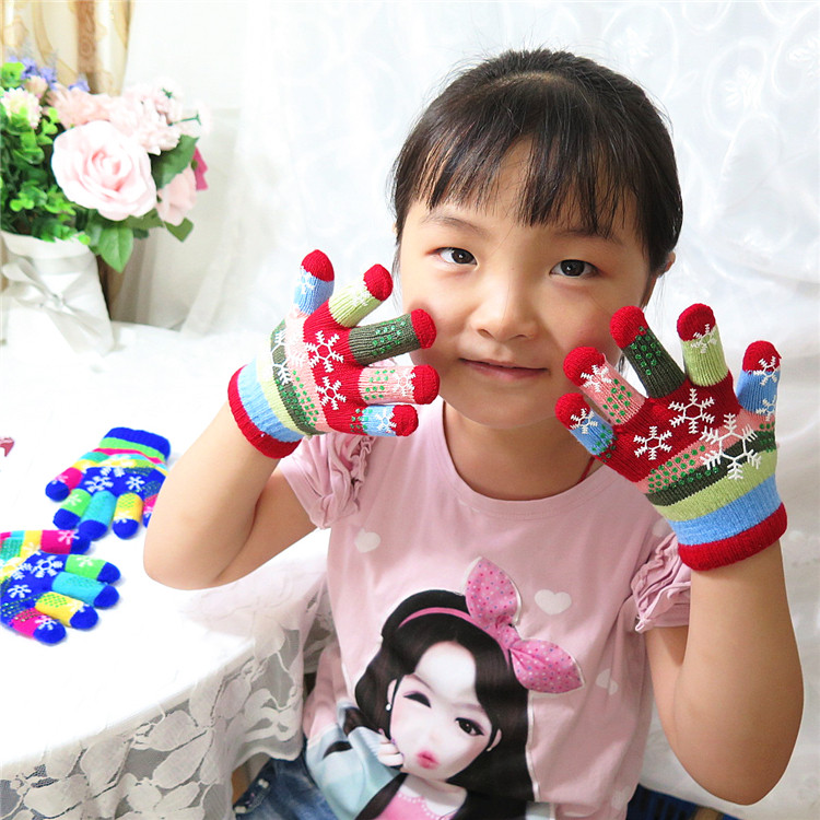 Зимний прекрасный разноцветный снежинка детские перчатки мужские и женские ученик двухслойный утепленный Младенец удерживающий тепло перчатки оптовые продажи