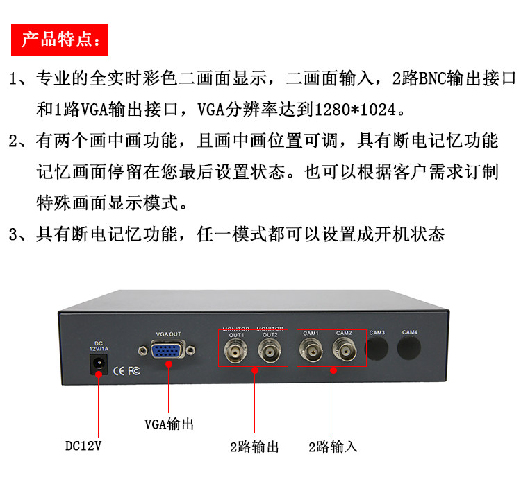 Разделитель экрана 2-х полосный высокая Четкий выход VGA 2 камера Просмотр ввода частота Разделенный экран мониторинга процессора популярный
