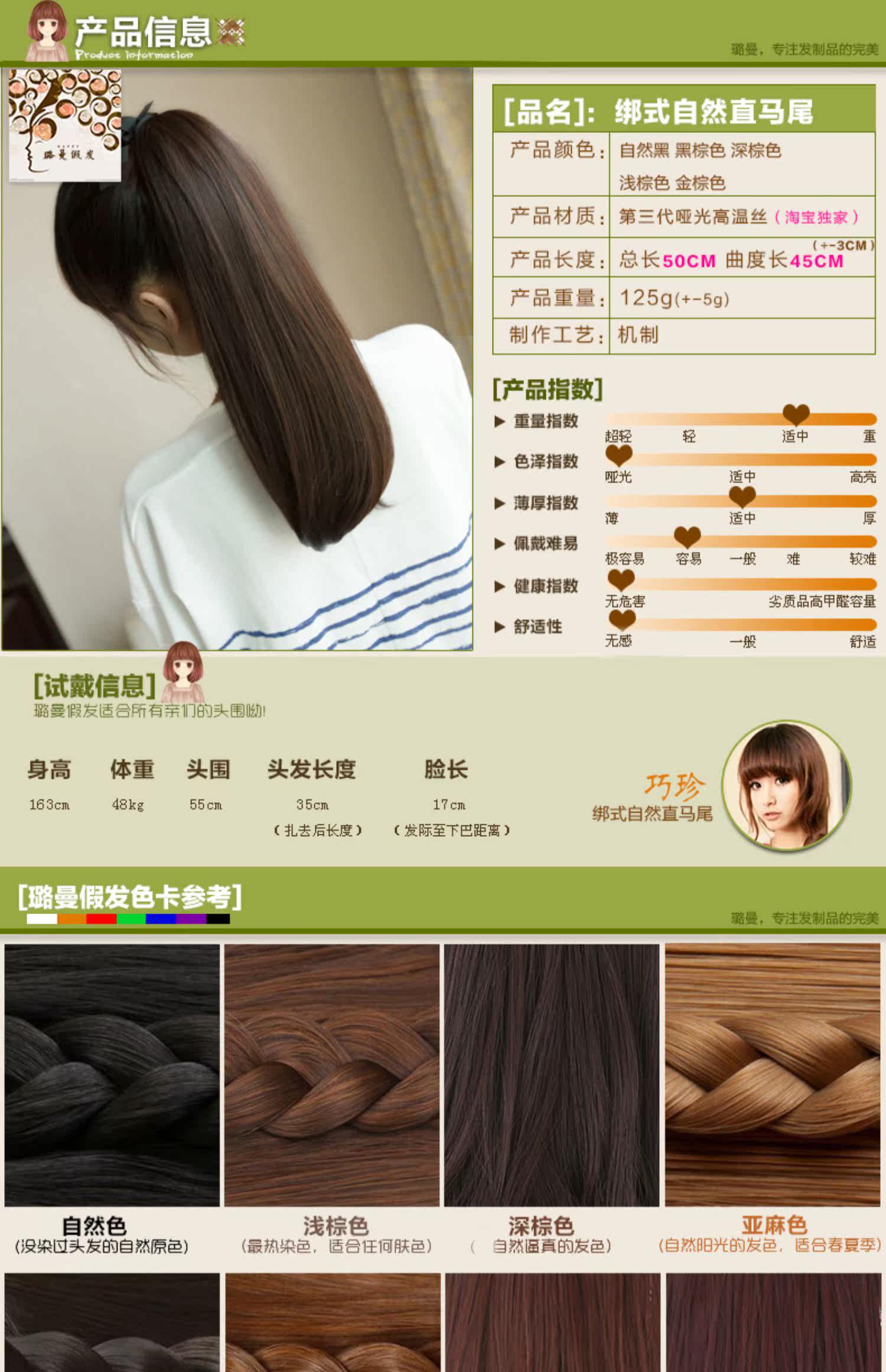 【 спец. предложение 】Парик женский реалистичный конь хвост Поддельная лошадь на привязи хвост Микро-катящаяся лошадь хвост Естественная прямая лошадь хвост 50092