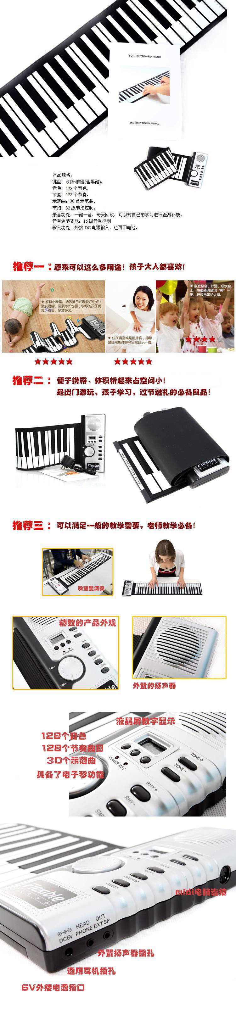 со складыванием Пианино установлено на пакет Он не занимает места, вы можете взять его с собой, на семейные собрания, вечеринки, дикие прогулки, вы можете проявить свои таланты в любое время и в любом месте и принести больше счастья семье и друзьям.