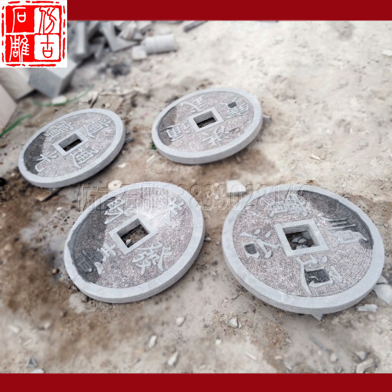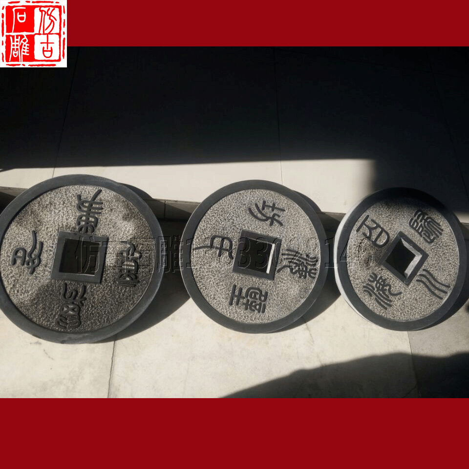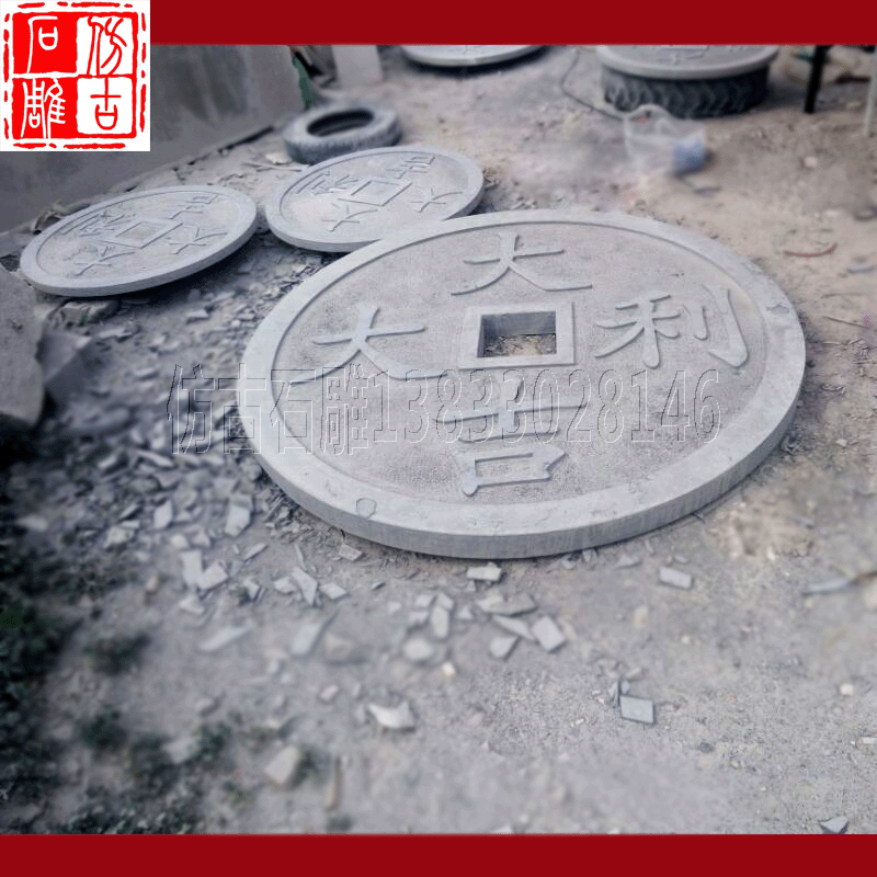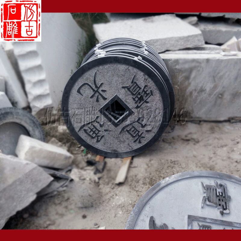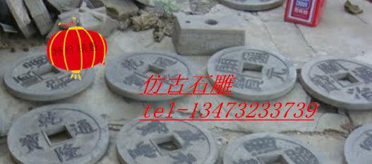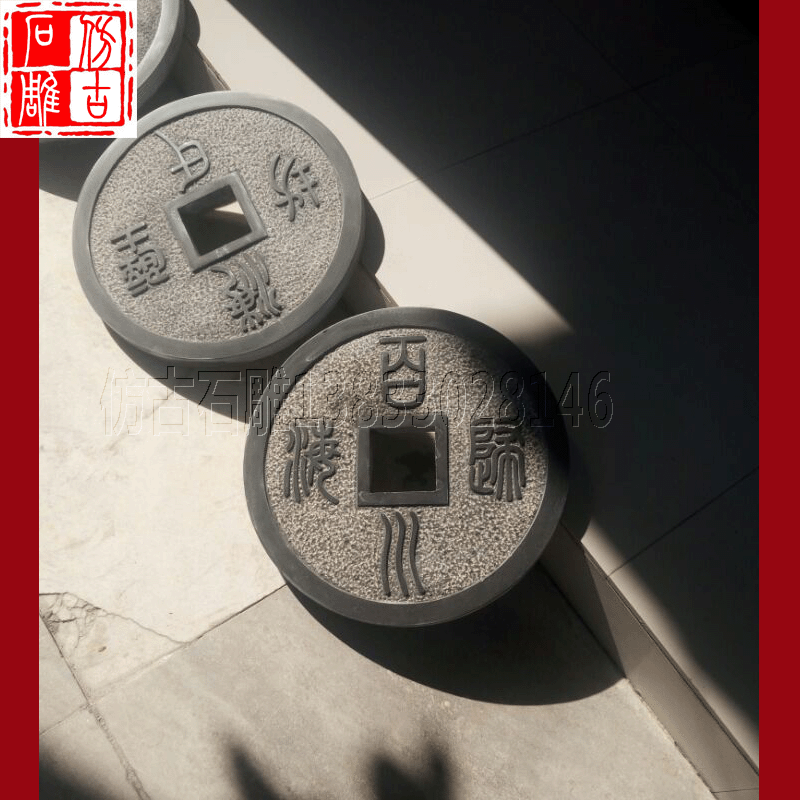 Камень резьба древняя монета синий каменный котел копия Древний древний поколение Монеты древние монеты мостовой камень рельеф панель Кирпичная дорога вдоль камня